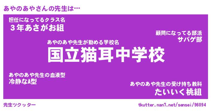 | ファンタジー風あだ名 | 『アヤフェル』『エターナルアヤノアヤー』 |