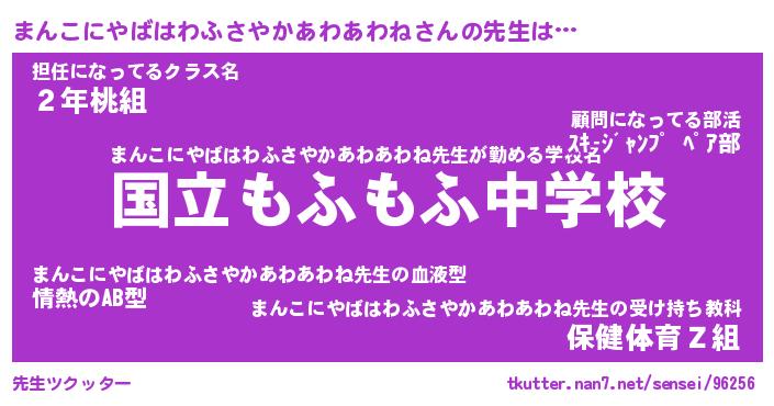 | 欧米人風あだ名 | 『マイケルまんこにやばはわふさやかあわあわね』 |