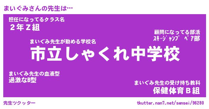 | 意味不明あだ名 | 『ペロリンまいぐみ』『永久保存まいぐみ』 |