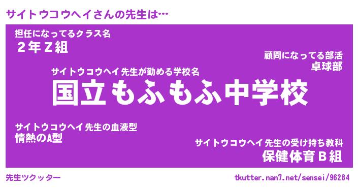 | ヒーロー風カッコイイあだ名 | 『スーパーサイトウコウヘイ』 |