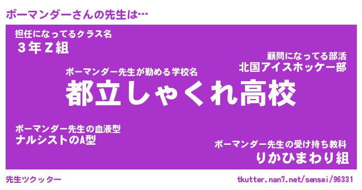 | ヒーロー風カッコイイあだ名 | 『スーパーボーマンダー』『幻影騎士ボー』 |