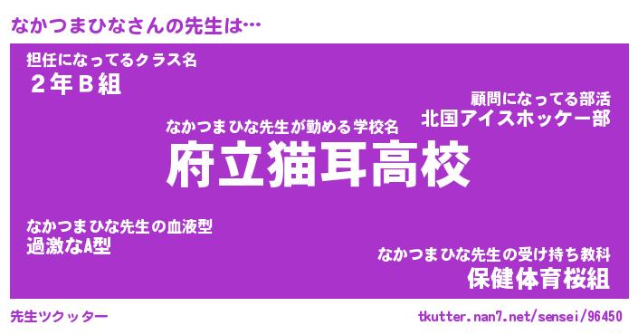 | ツイッター | なかつまひなさんのツイッターID『namakemono_man』 |