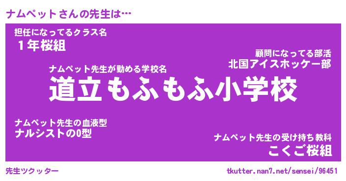 | ファンタジー風あだ名 | 『ナムフェル』『エターナルナムペットー』 |
