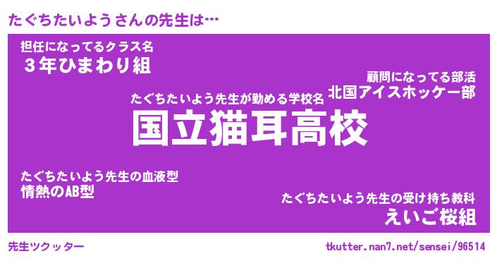| ヘコむあだ名 | 『たぐにー』『つくし』『たぐっぺ』 |