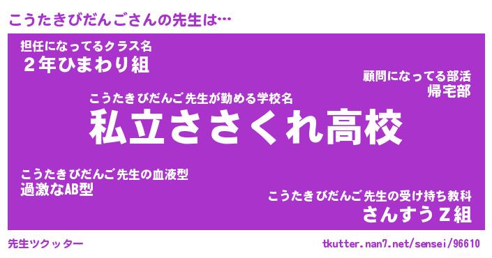 | 伝説のあだ名 | 『伝説のスナイパーこうたきびだんご』 |