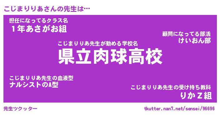 | 女子向けラノベタイトル風あだ名 | 『こじまりりあ姫と円卓の騎士』 |