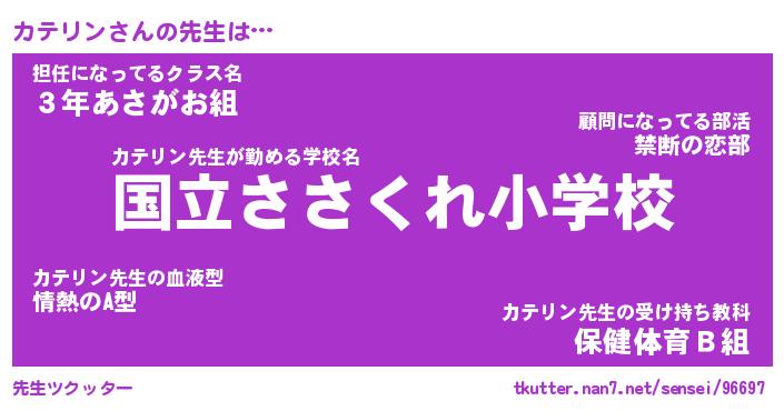 | 意味不明あだ名 | 『ペロリンカテリン』『永久保存カテリン』 |