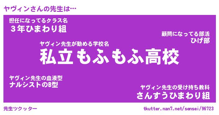 | 欧米人風あだ名 | 『マイケルヤヴィン』『ウサインヤヴィン』 |