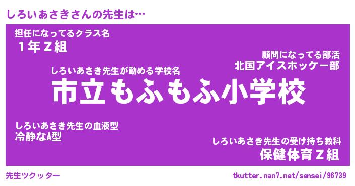 | 肩書あだ名 | 『しろいあさき店長』『しろいあさき先生』 |