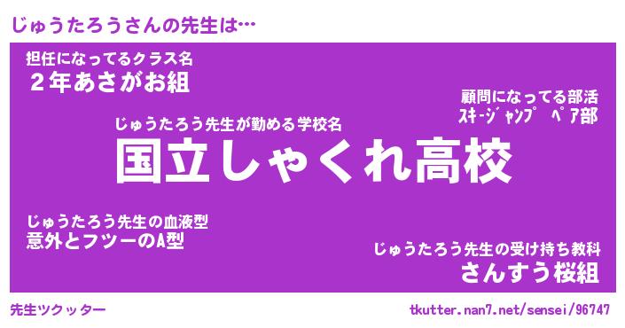 | 伝説のあだ名 | 『伝説のスナイパーじゅうたろう』 |