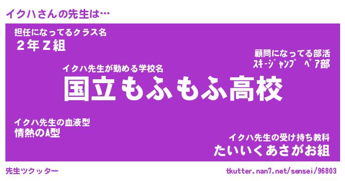 | 意味不明あだ名 | 『ペロリンイクハ』『イクハフォーエバー』 |