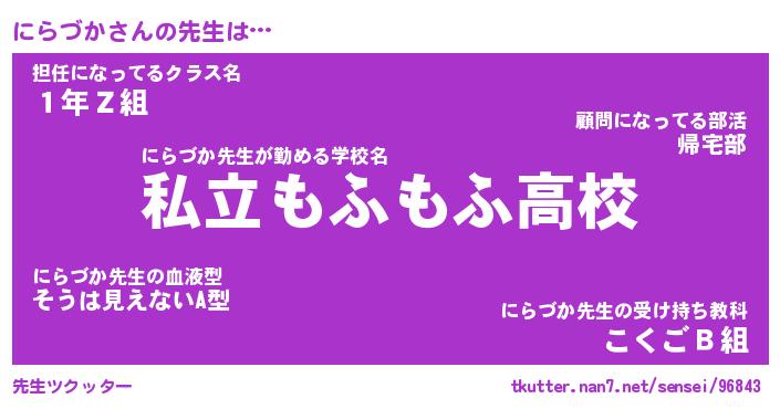 | 意味不明あだ名 | 『ペロリンにらづか』『永久保存にらづか』 |