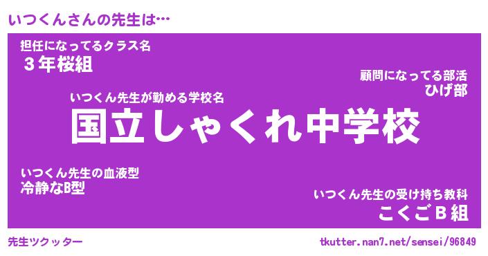| 伝説のあだ名 | 『伝説のスナイパーいつくん』 |