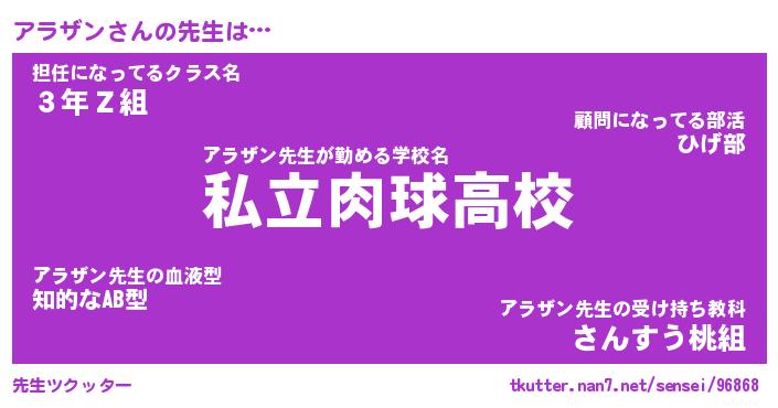 | 欧米人風あだ名 | 『マイケルアラザン』『ウサインアラザン』 |
