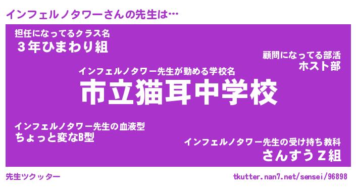 | 男性向けラノベタイトル風あだ名 | 『インフェルノタワーの憂鬱』 |