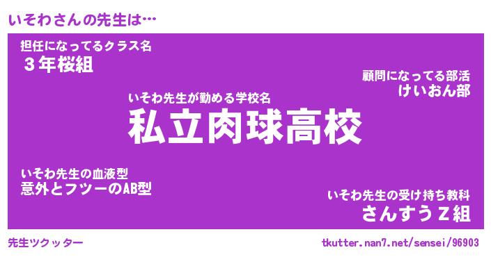 | ヒーロー風カッコイイあだ名 | 『スーパーイソワ』『ウルトラいそわマン』 |