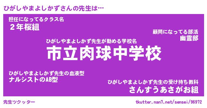 | ヒーロー風カッコイイあだ名 | 『スーパーヒガシヤマヨシカズ』 |
