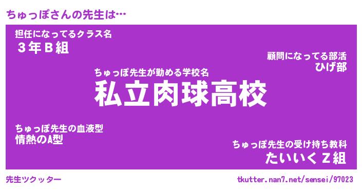 | ヒーロー風カッコイイあだ名 | 『スーパーチュッポ』『黄金騎士チュ』 |