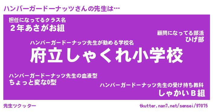 | 伝説のあだ名 | 『封印されしスナイパーハンバーガードーナッツ』 |