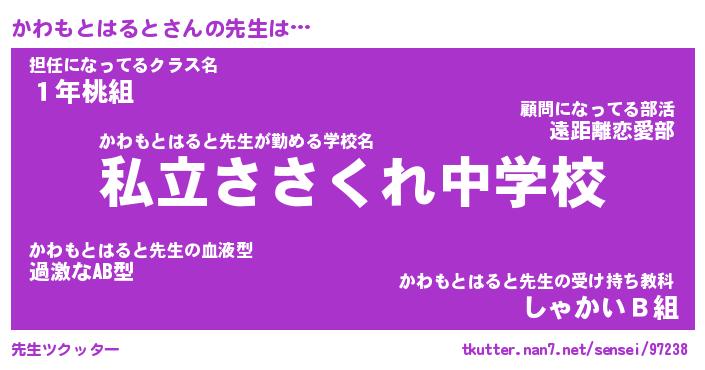| ヘコむあだ名 | 『かわもー』『つくし』『かわお』 |