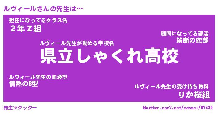 | ヒーロー風カッコイイあだ名 | 『スーパールヴィール』『暗黒騎士ルヴ』 |
