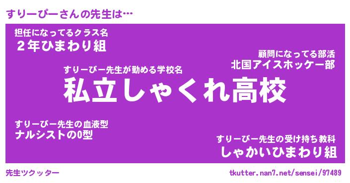 | 伝説のあだ名 | 『伝説のスナイパーすりーぴー』 |