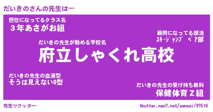 | 伝説のあだ名 | 『封印されしスナイパーだいきの』 |