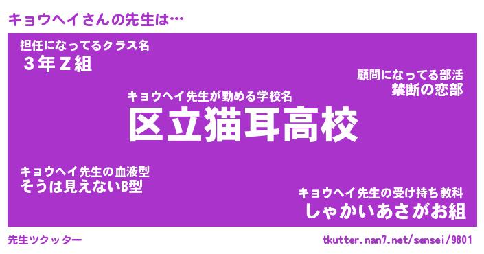 | ファンタジー風あだ名 | 『キョフェル』『エターナルキョウヘイー』 |