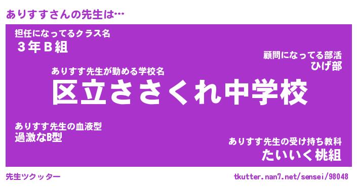 | 意味不明あだ名 | 『ペロリンありすす』『永久保存ありすす』 |