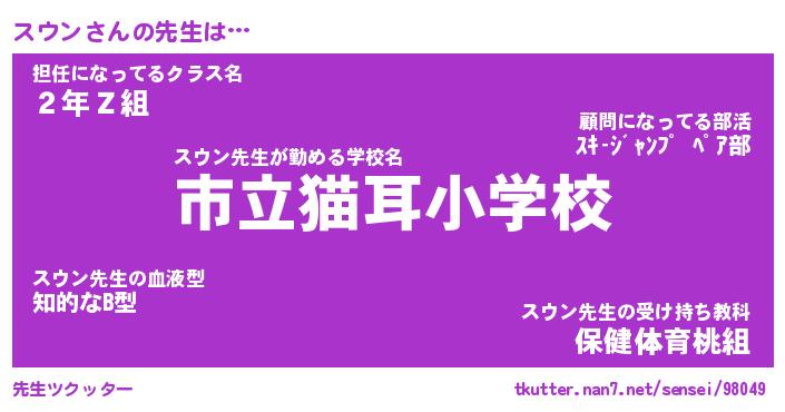 | ヘコむあだ名 | 『スウにー』『なまこ酢』 |