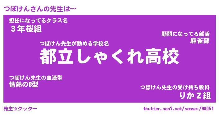 | 意味不明あだ名 | 『ペロリンつぼけん』『永久保存つぼけん』 |