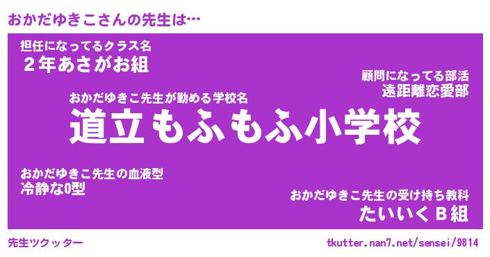 | ヘコむあだ名 | 『おかにゅー』『なまこ酢』『おかお』 |