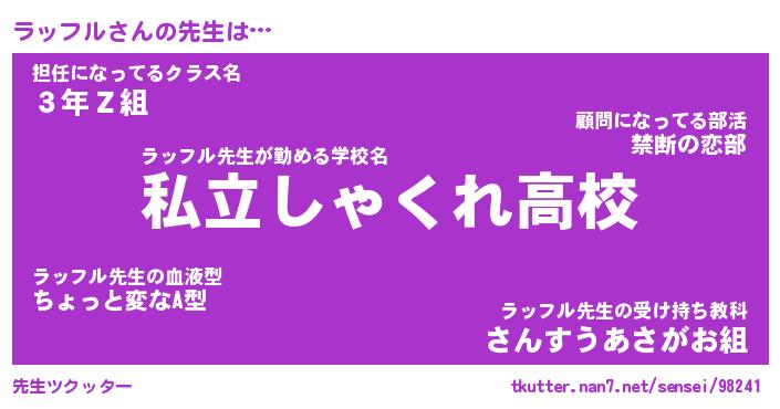 | ファンタジー風あだ名 | 『ラッフェル』『エターナルラッフルー』 |