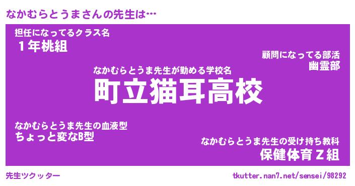| 伝説のあだ名 | 『封印されし竜騎士なかむらとうま』 |