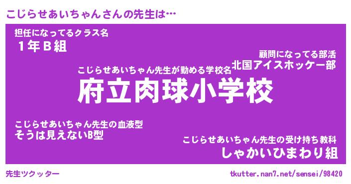 | 2回繰り返すあだ名 | 『こじこじ』『ここじじ』『あんあん』 |
