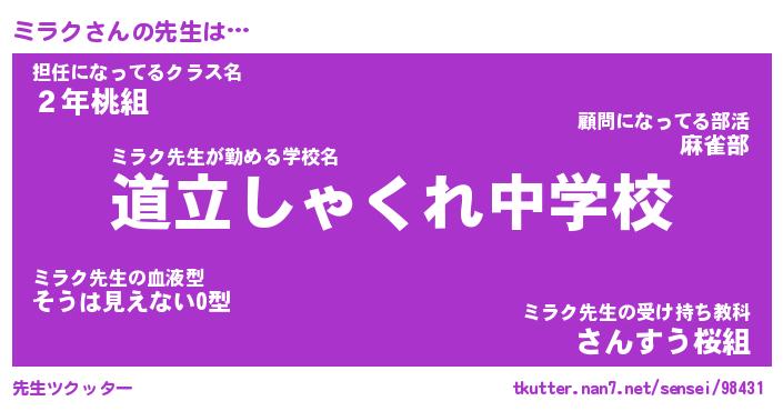 | ヒーロー風カッコイイあだ名 | 『スーパーミラク』『ウルトラミラクマン』 |
