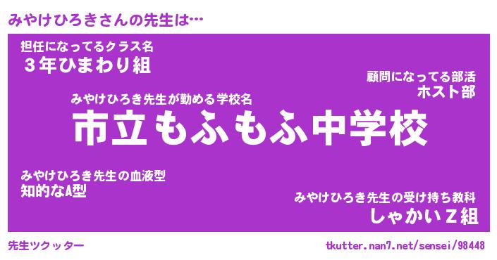 | ヘコむあだ名 | 『みやにゅー』『牛乳』『みやっ子』 |