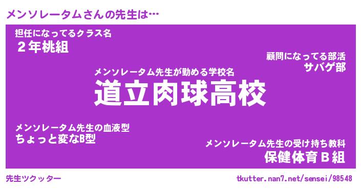 | 2回繰り返すあだ名 | 『メンメン』『メメンン』『うねうね』 |