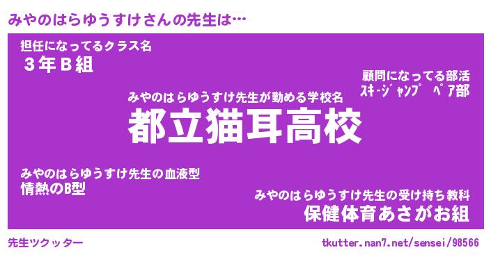 | 伝説のあだ名 | 『不死鳥の竜騎士みやのはらゆうすけ』 |