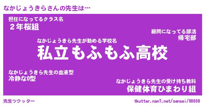 | 男性向けラノベタイトル風あだ名 | 『なかじょうきらの憂鬱』 |