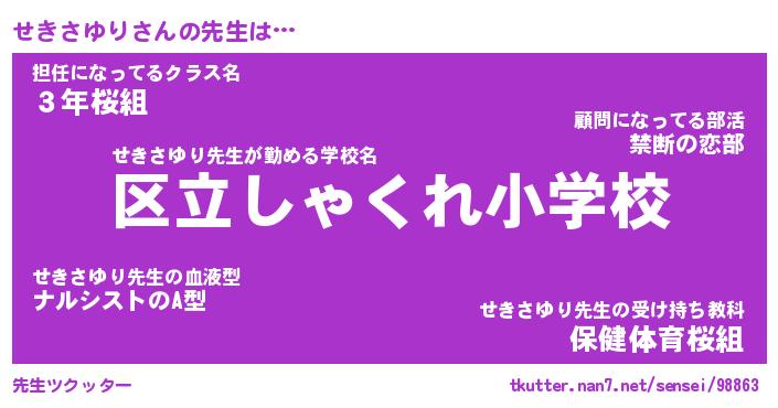| 伝説のあだ名 | 『封印されしスナイパーせきさゆり』 |