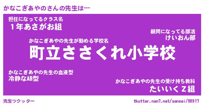 | 伝説のあだ名 | 『封印されしスナイパーかなこぎあやの』 |