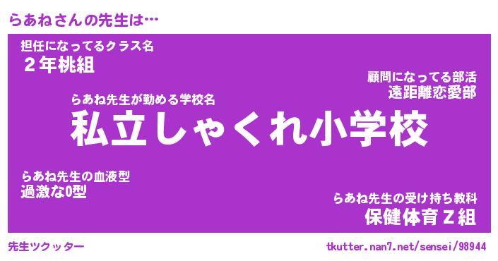 | 肩書あだ名 | 『らあね御曹司』『らあね国家主席』 |