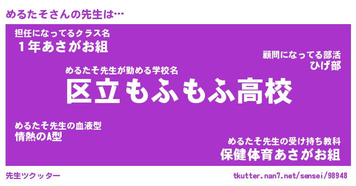| ヘコむあだ名 | 『めるにゅー』『牛乳』『めるぷりん』 |