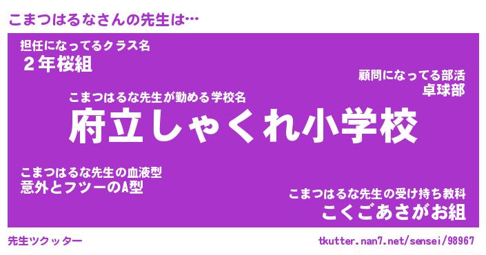 | ポケモン風あだ名 | 『コマチュウ』『コマツダネ』 |