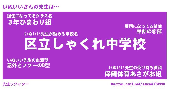 | 意味不明あだ名 | 『ペロリンいぬいい』『永久保存いぬいい』 |