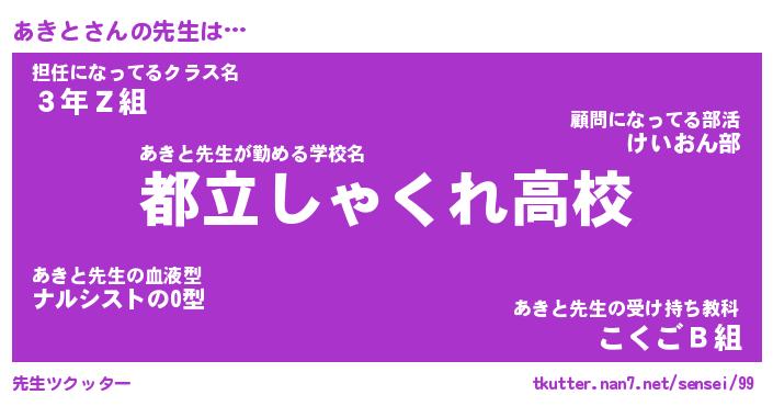 | 肩書あだ名 | 『あきと御曹司』『あきと総理大臣』 |