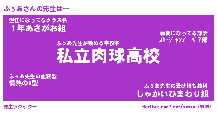 | ヘコむあだ名 | 『ふぅふぇ~』『つくし』『ふぅ太郎』 |