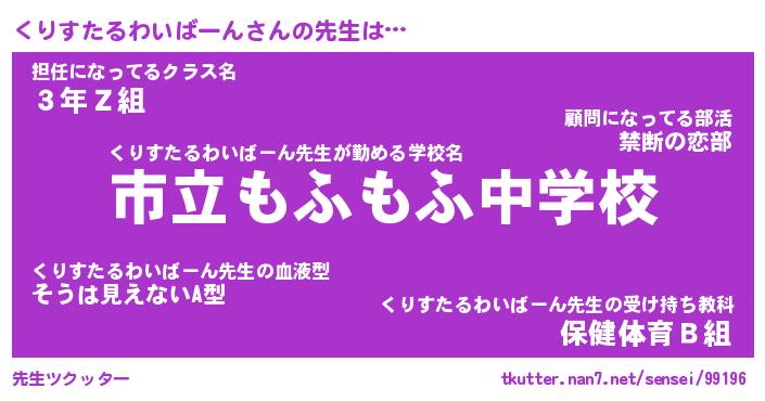 | 意味不明あだ名 | 『ペロリンくりすたるわいばーん』 |