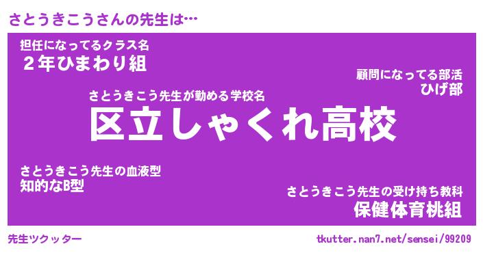 | ヒーロー風カッコイイあだ名 | 『スーパーサトウキコウ』『銀牙騎士サト』 |